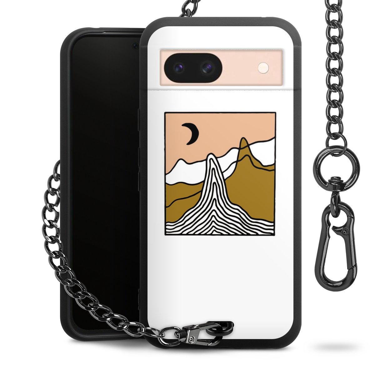 - Mattschwarze Handyhülle mit Metallkette