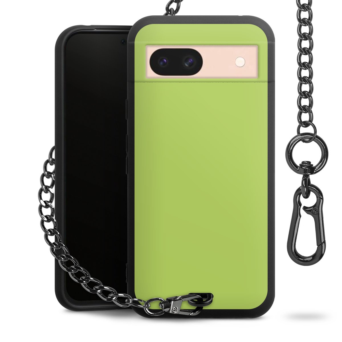- Mattschwarze Handyhülle mit Metallkette