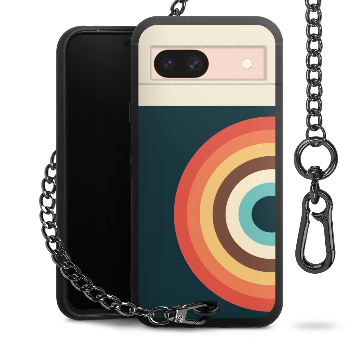 - Mattschwarze Handyhülle mit Metallkette