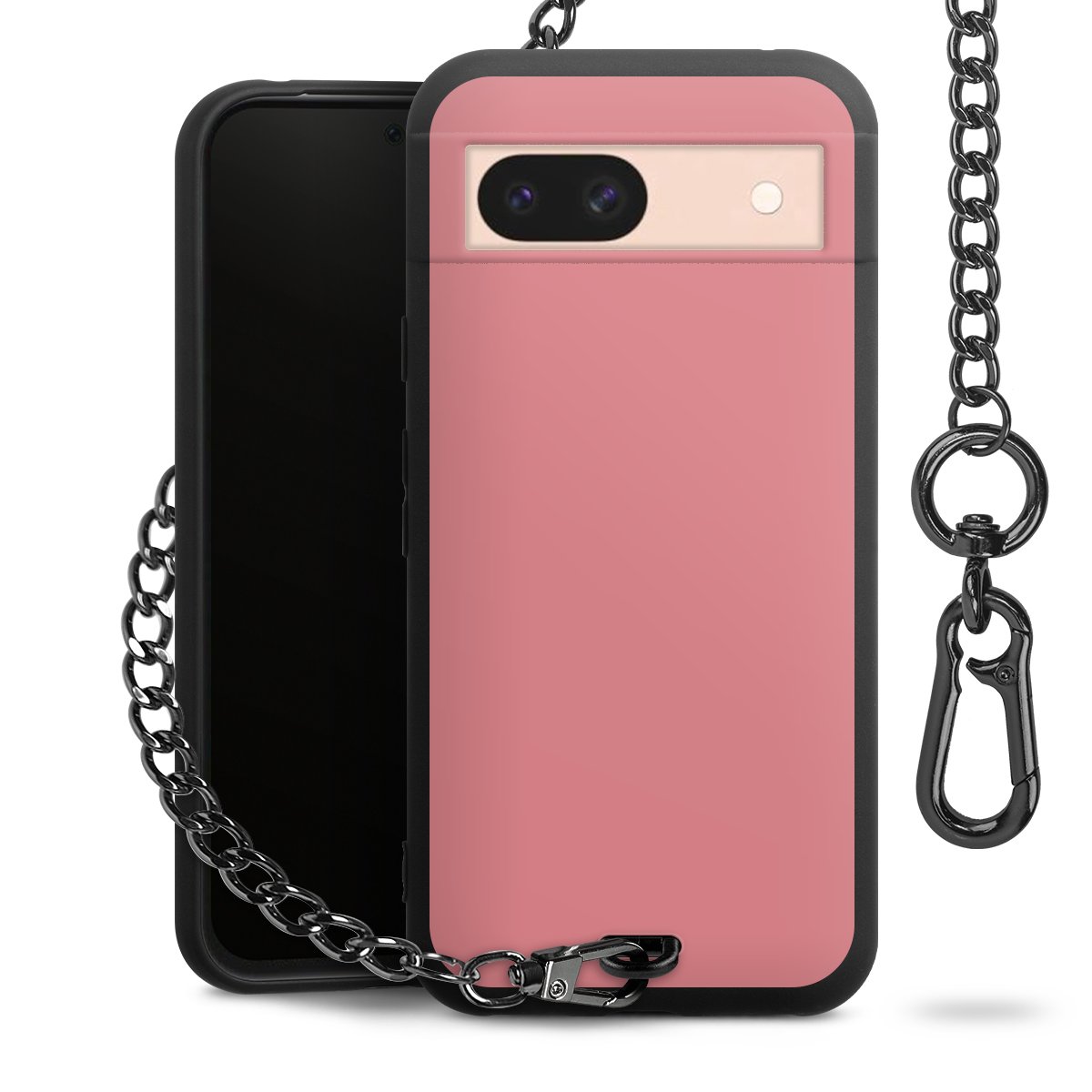 - Mattschwarze Handyhülle mit Metallkette