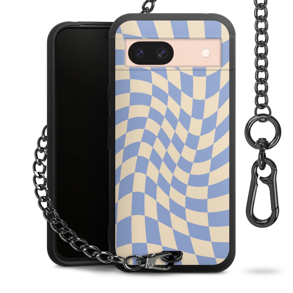 - Mattschwarze Handyhülle mit Metallkette