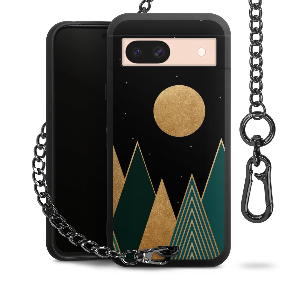 • Mattschwarze Handyhülle mit Metallkette