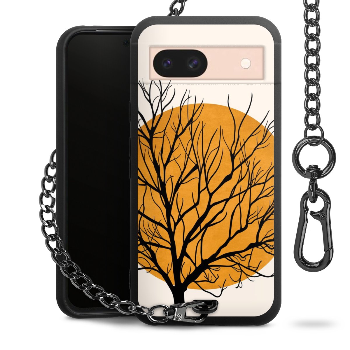 • Mattschwarze Handyhülle mit Metallkette