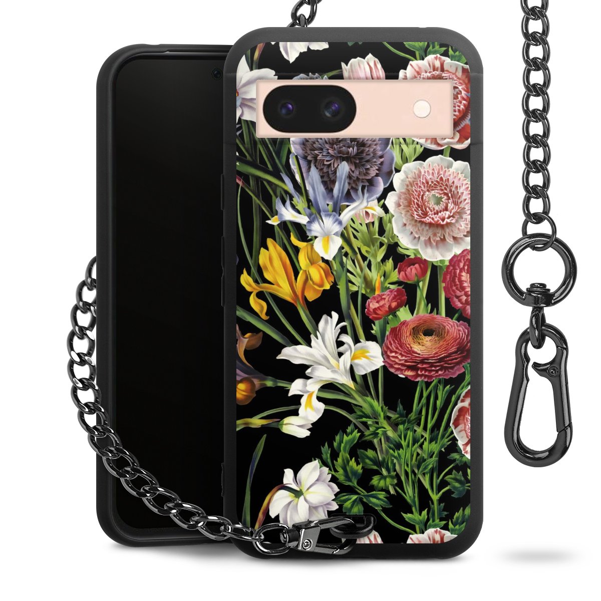• Mattschwarze Handyhülle mit Metallkette