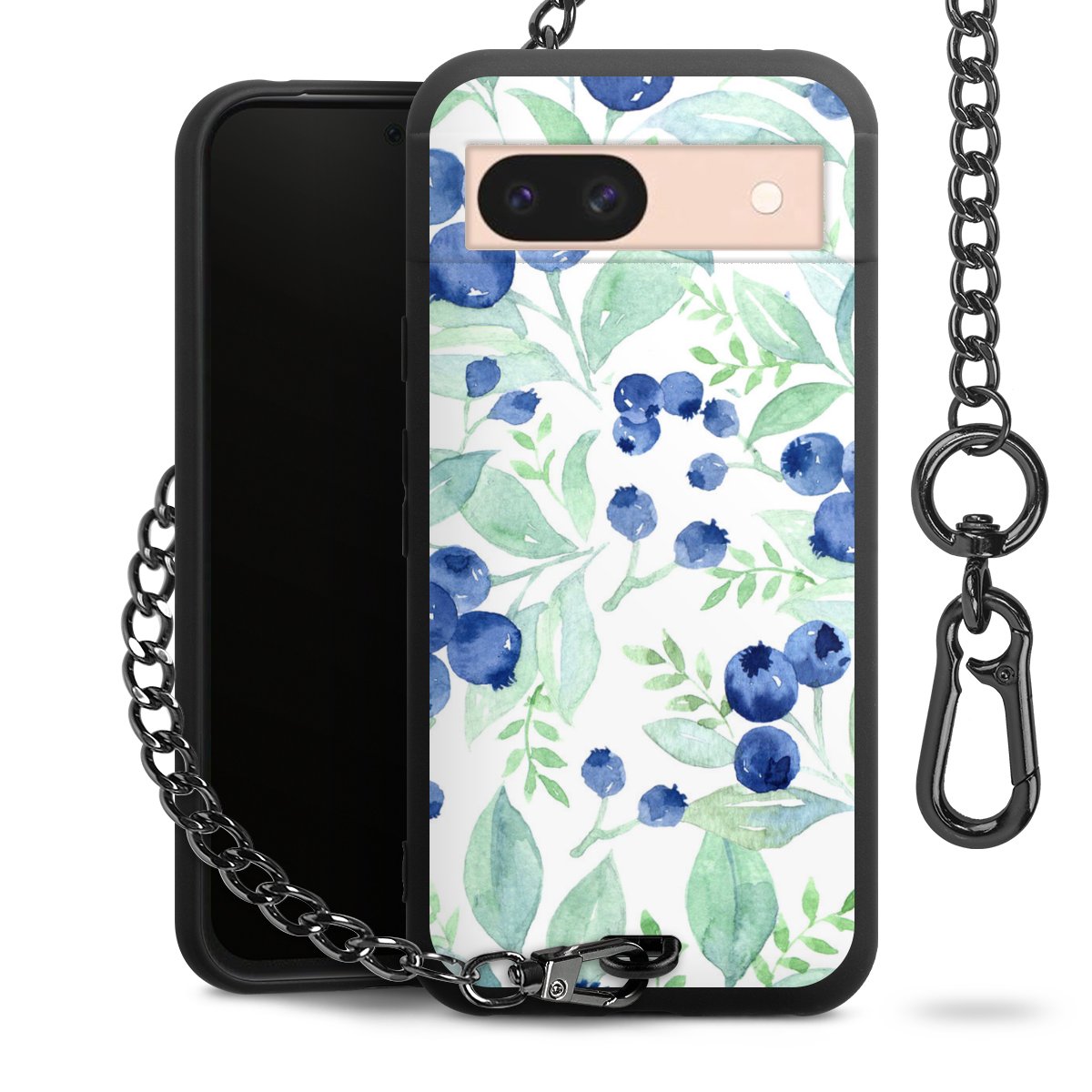 • Mattschwarze Handyhülle mit Metallkette