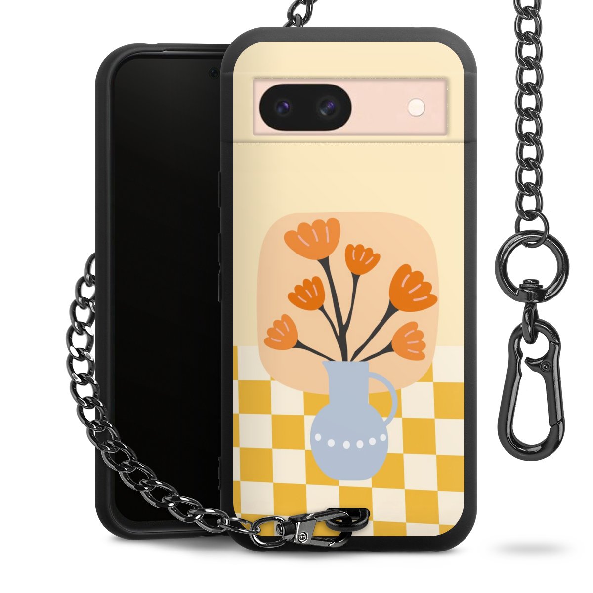 Die mattschwarze Silikon-Handyhülle besteht aus robustem TPU (thermoplastisches Polyurethan). Sie ist flexibel und schützt Dein Smartphone vor Stößen und Kratzern. Die Kette sowie der Karabinerhaken sind aus Metall in Gunmetal-Optik gefertigt. Für dieses Produkt kommen ausschließlich TÜV-geprüfte Materialien zum Einsatz.