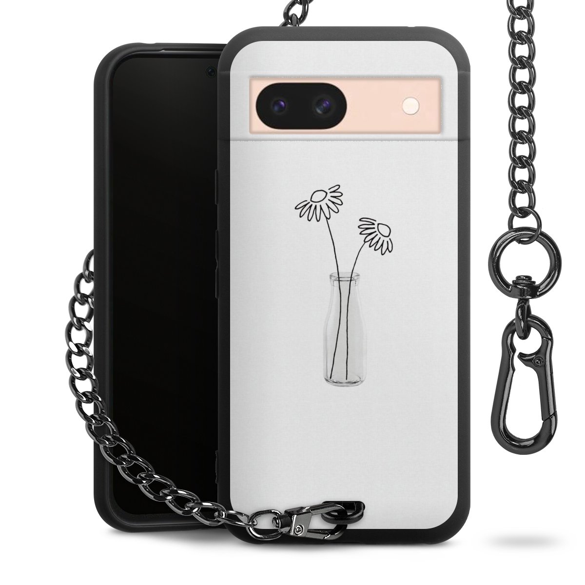• Mattschwarze Handyhülle mit Metallkette