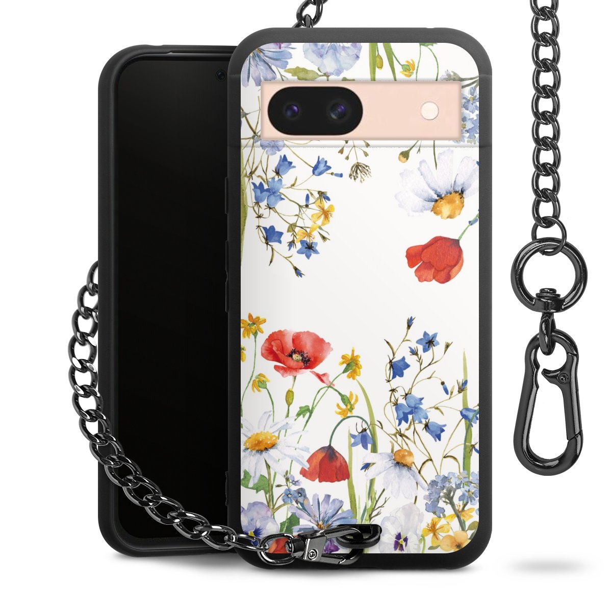 Die mattschwarze Silikon-Handyhülle besteht aus robustem TPU (thermoplastisches Polyurethan). Sie ist flexibel und schützt Dein Smartphone vor Stößen und Kratzern. Die Kette sowie der Karabinerhaken sind aus Metall in Gunmetal-Optik gefertigt. Für dieses Produkt kommen ausschließlich TÜV-geprüfte Materialien zum Einsatz.