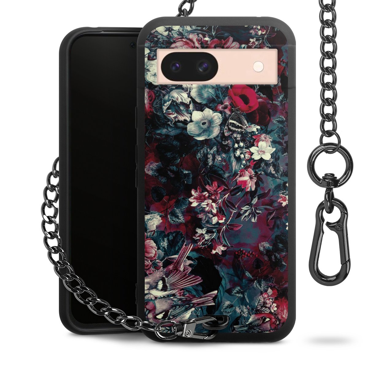 • Mattschwarze Handyhülle mit Metallkette