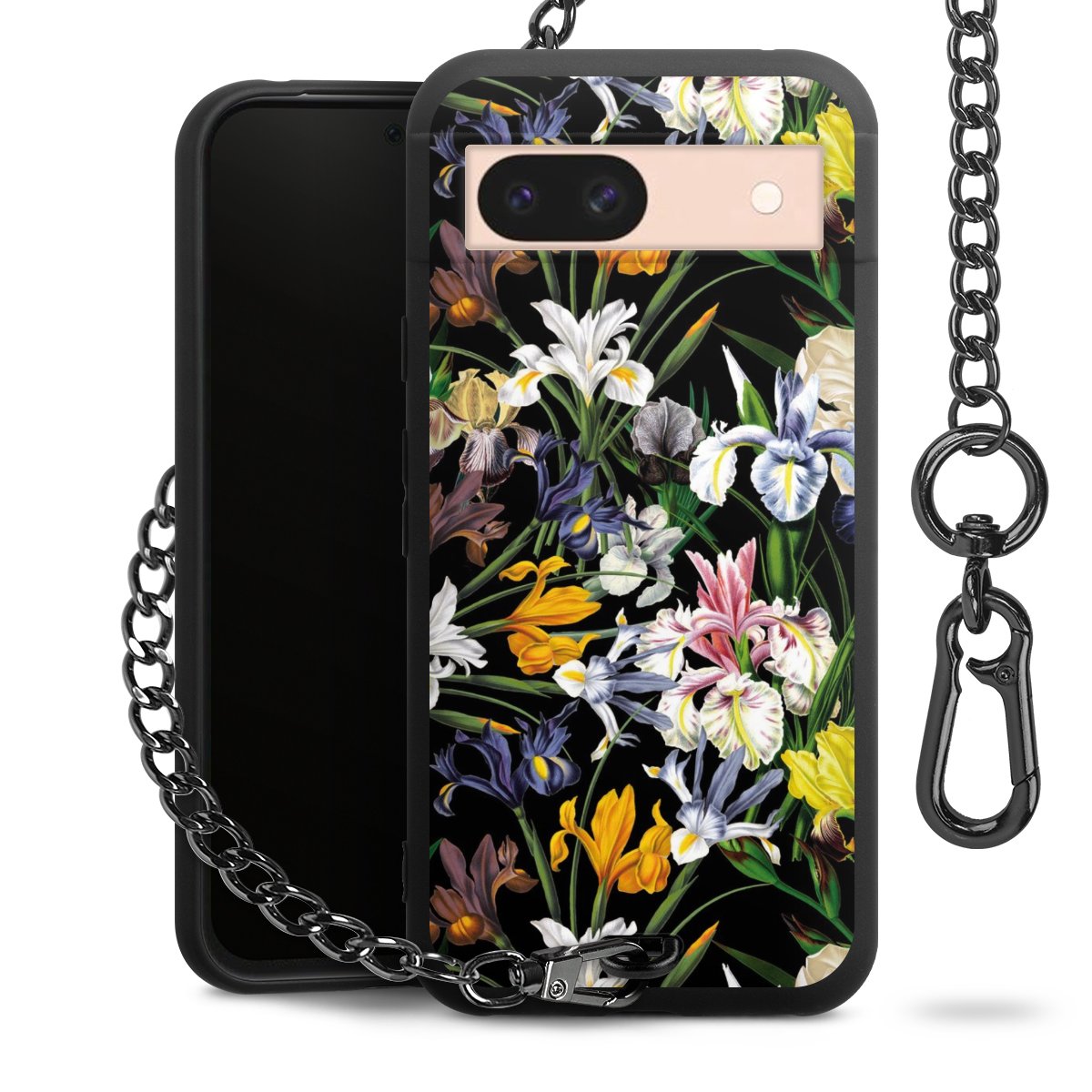 • Mattschwarze Handyhülle mit Metallkette