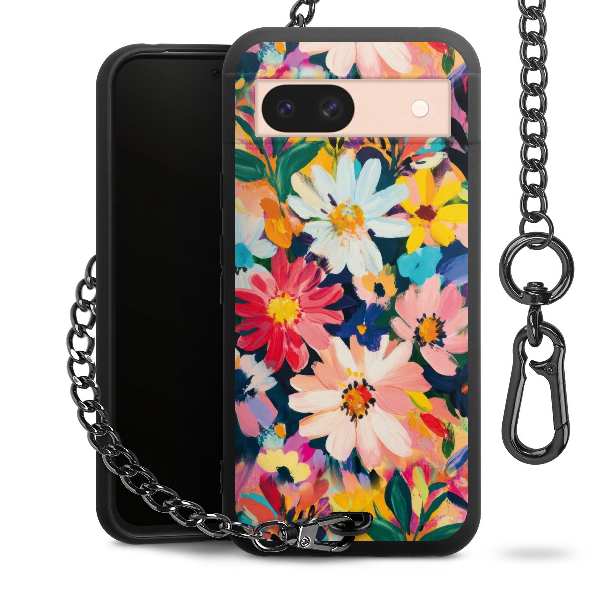 • Mattschwarze Handyhülle mit Metallkette