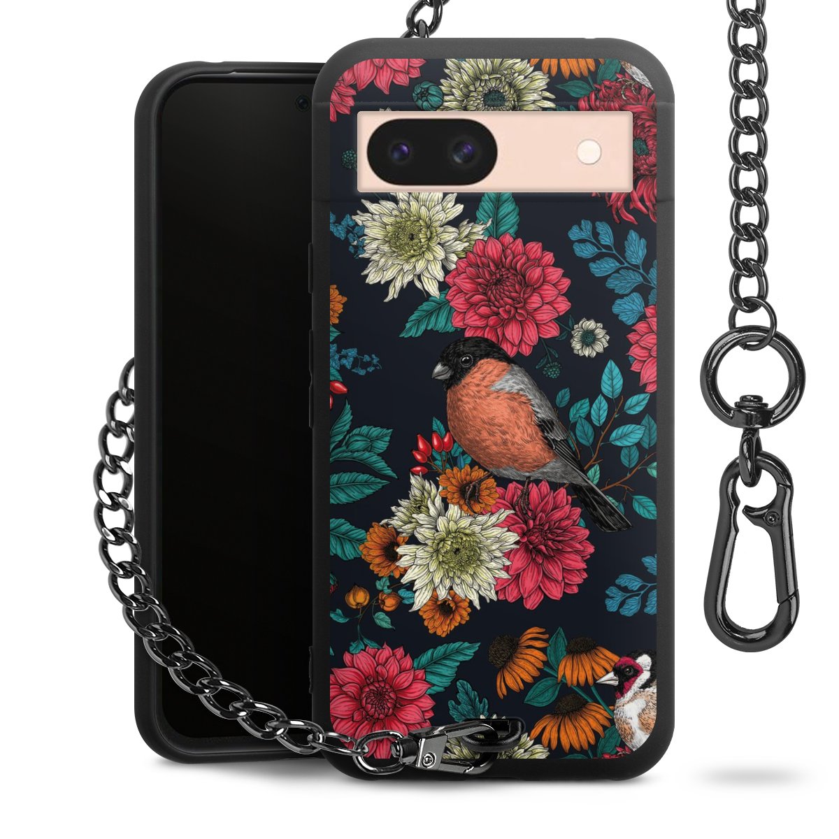 • Mattschwarze Handyhülle mit Metallkette