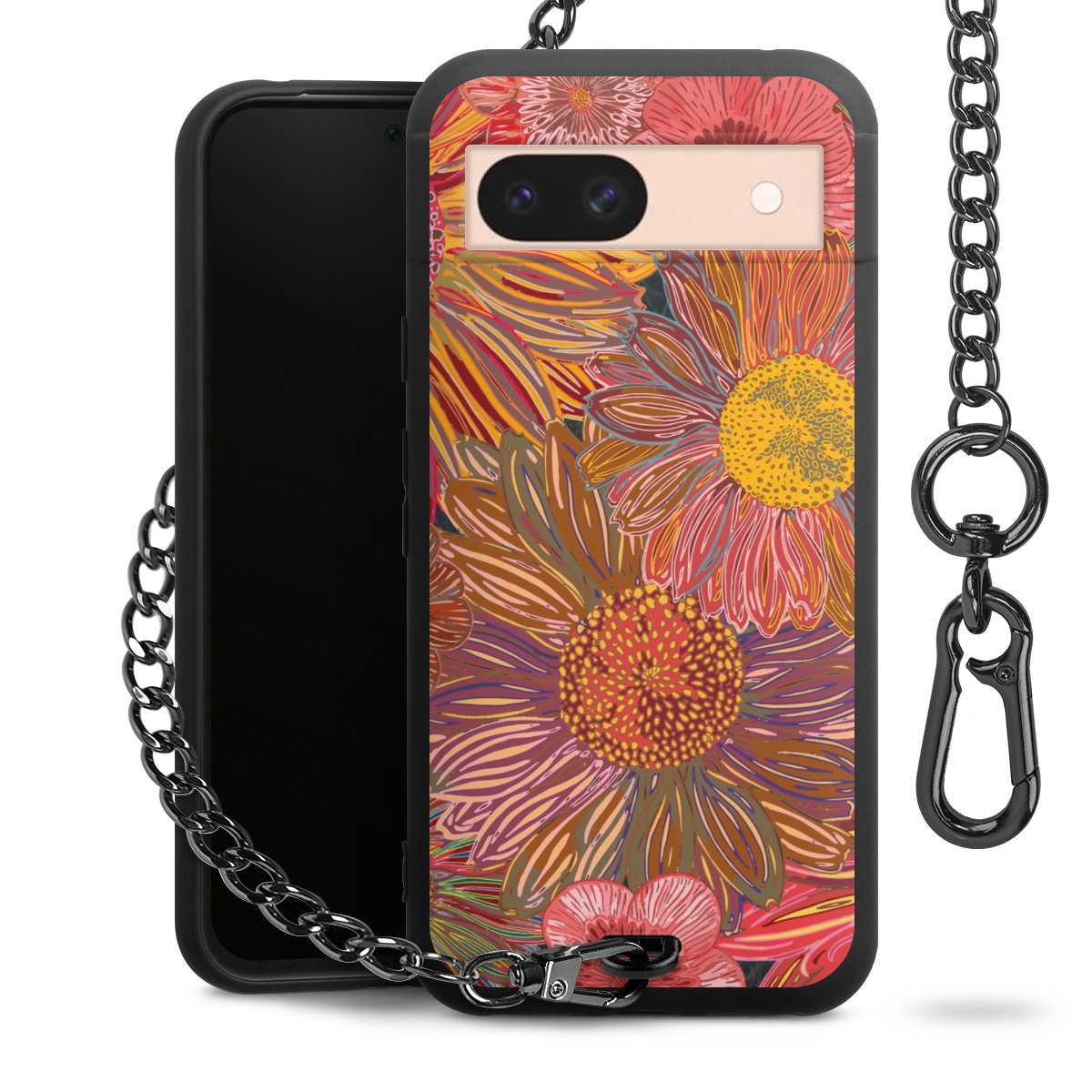 Die mattschwarze Silikon-Handyhülle besteht aus robustem TPU (thermoplastisches Polyurethan). Sie ist flexibel und schützt Dein Smartphone vor Stößen und Kratzern. Die Kette sowie der Karabinerhaken sind aus Metall in Gunmetal-Optik gefertigt. Für dieses Produkt kommen ausschließlich TÜV-geprüfte Materialien zum Einsatz.