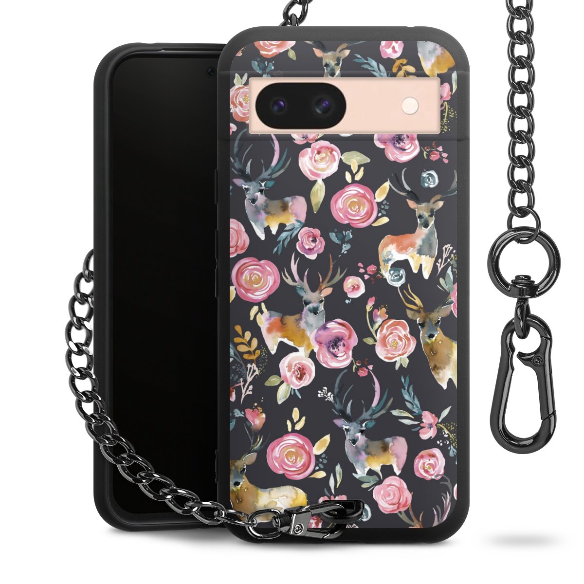Die mattschwarze Silikon-Handyhülle besteht aus robustem TPU (thermoplastisches Polyurethan). Sie ist flexibel und schützt Dein Smartphone vor Stößen und Kratzern. Die Kette sowie der Karabinerhaken sind aus Metall in Gunmetal-Optik gefertigt. Für dieses Produkt kommen ausschließlich TÜV-geprüfte Materialien zum Einsatz.