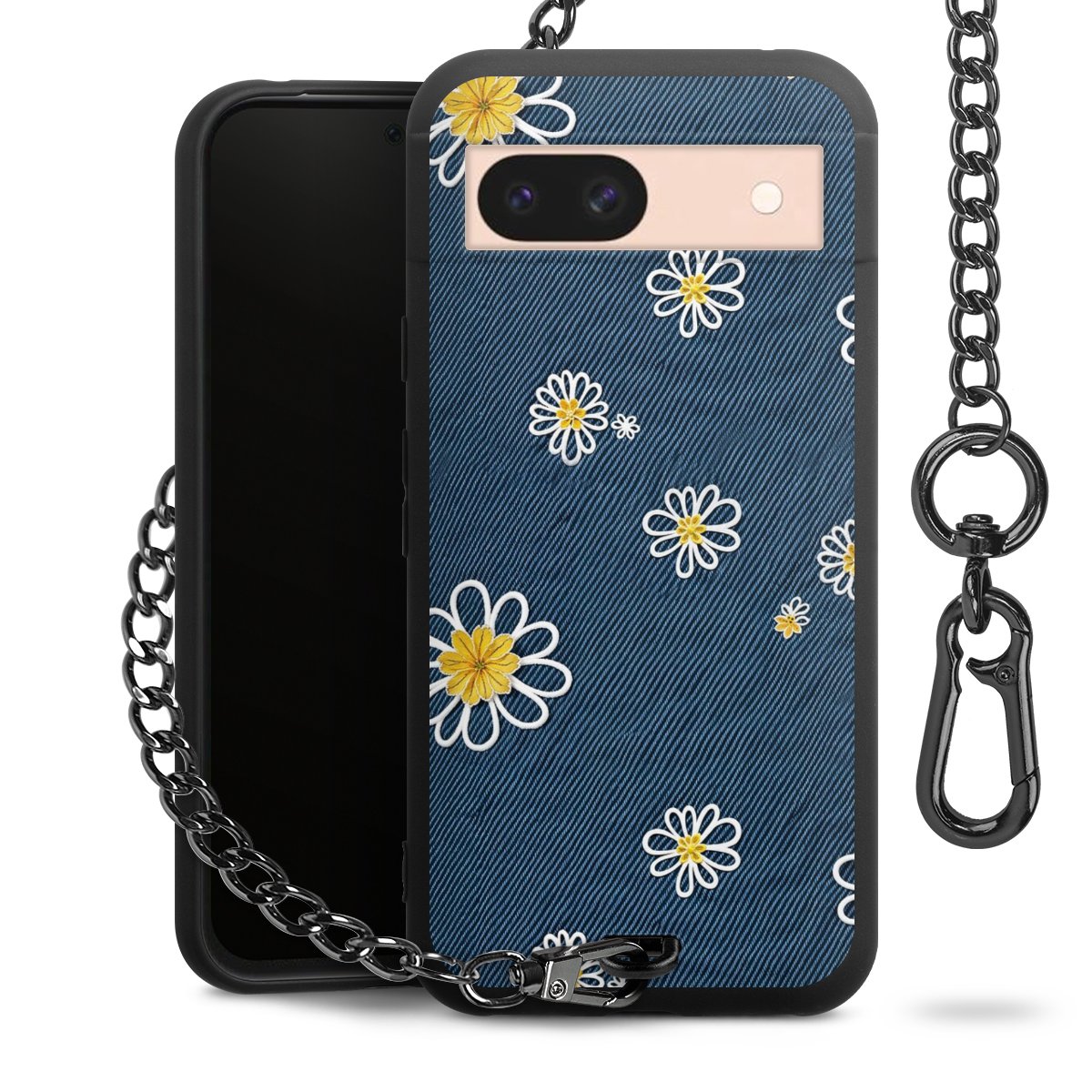 - Mattschwarze Handyhülle mit Metallkette