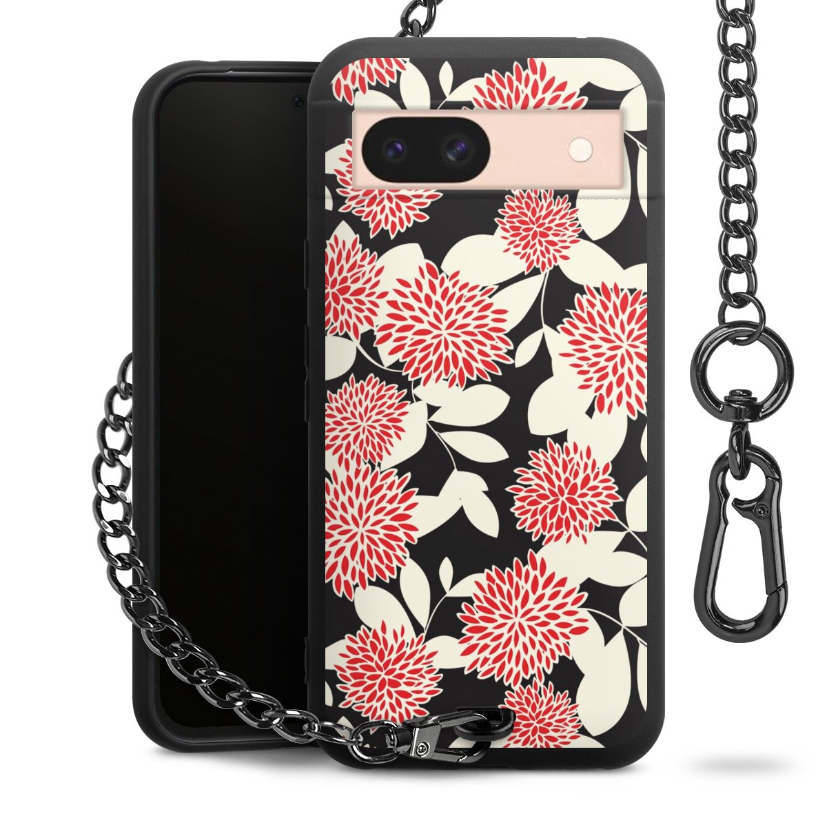 - Mattschwarze Handyhülle mit Metallkette