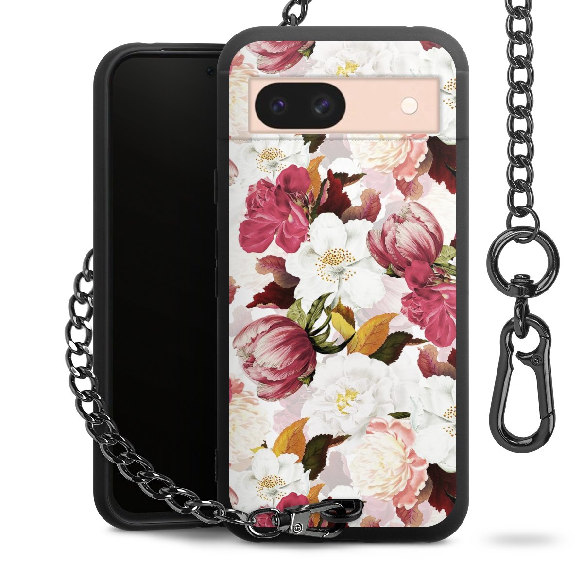 • Mattschwarze Handyhülle mit Metallkette