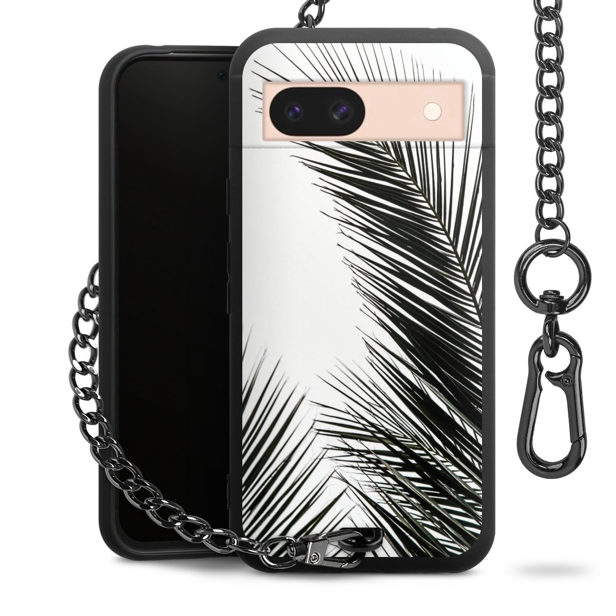 • Mattschwarze Handyhülle mit Metallkette