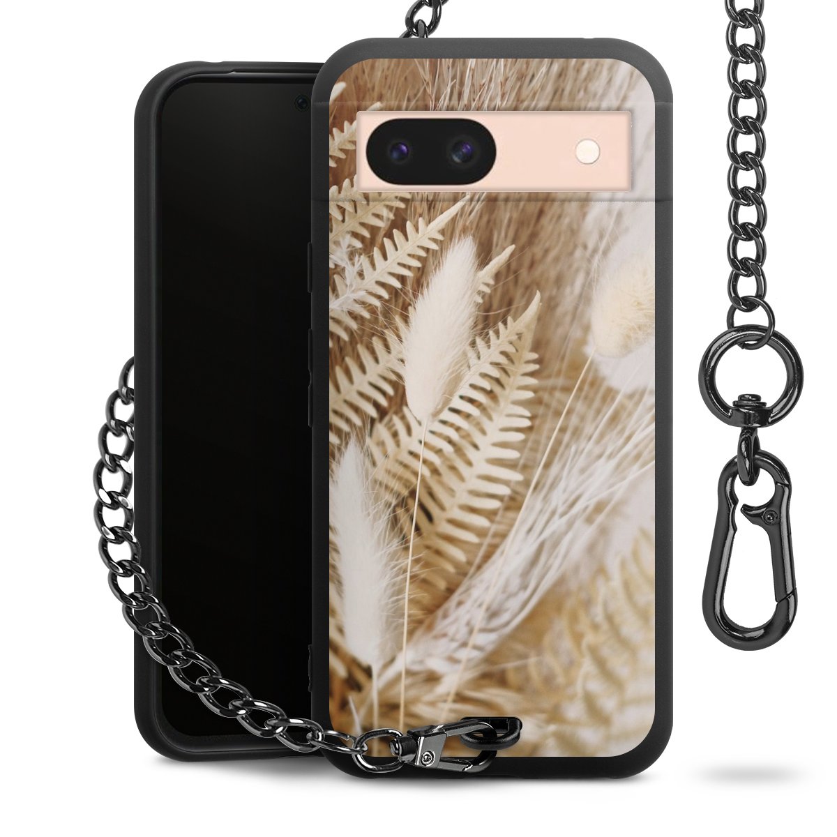 - Mattschwarze Handyhülle mit Metallkette
