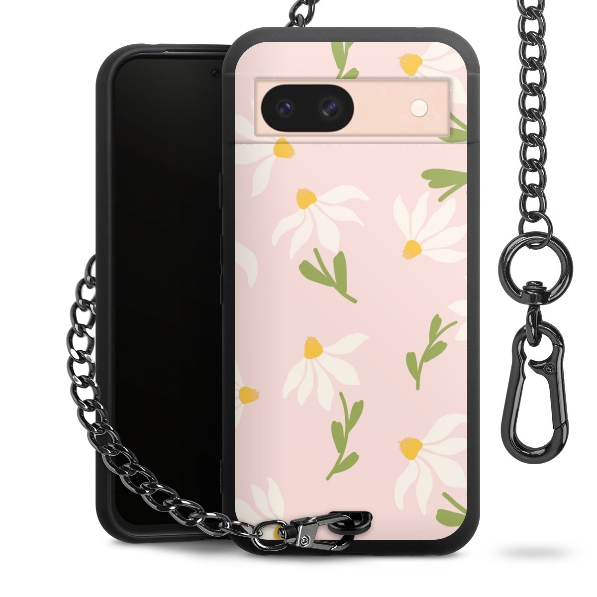 • Mattschwarze Handyhülle mit Metallkette
