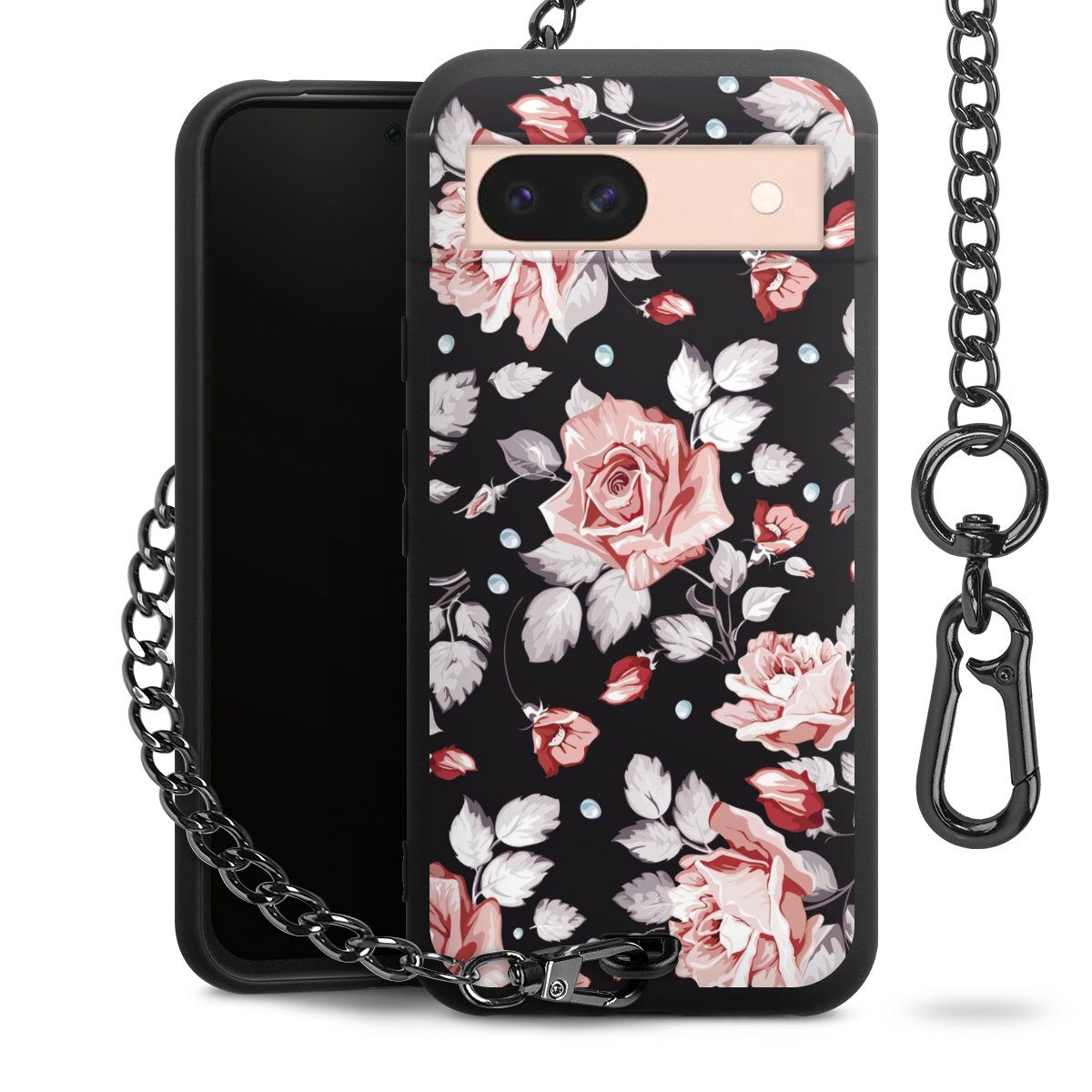 - Mattschwarze Handyhülle mit Metallkette