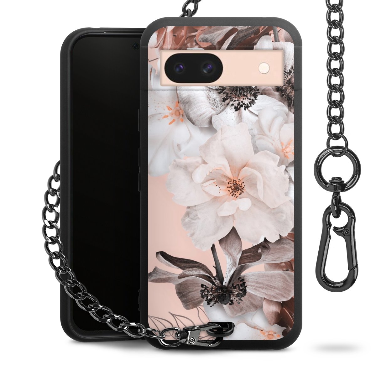 • Mattschwarze Handyhülle mit Metallkette