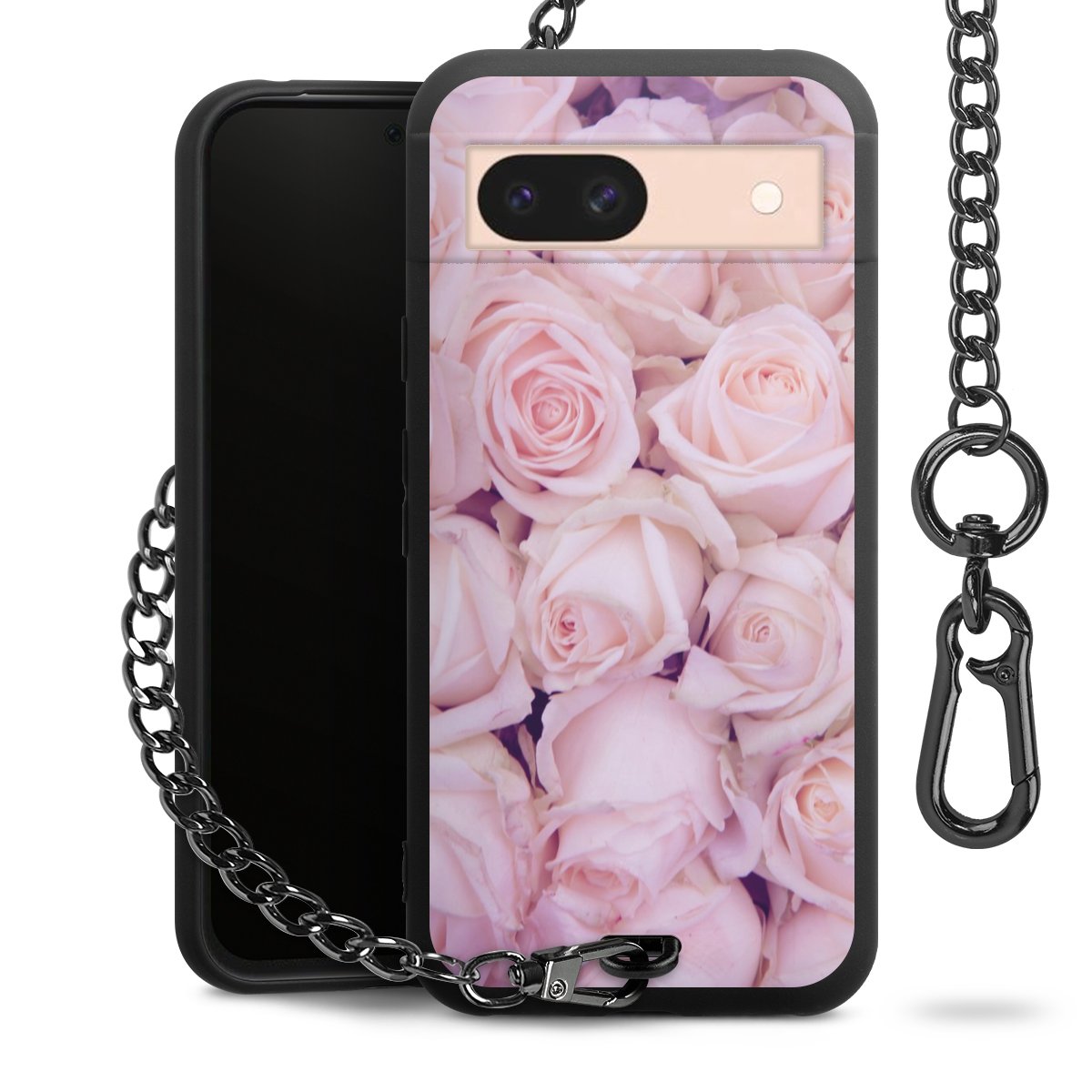 Die mattschwarze Silikon-Handyhülle besteht aus robustem TPU (thermoplastisches Polyurethan). Sie ist flexibel und schützt Dein Smartphone vor Stößen und Kratzern. Die Kette sowie der Karabinerhaken sind aus Metall in Gunmetal-Optik gefertigt. Für dieses Produkt kommen ausschließlich TÜV-geprüfte Materialien zum Einsatz.