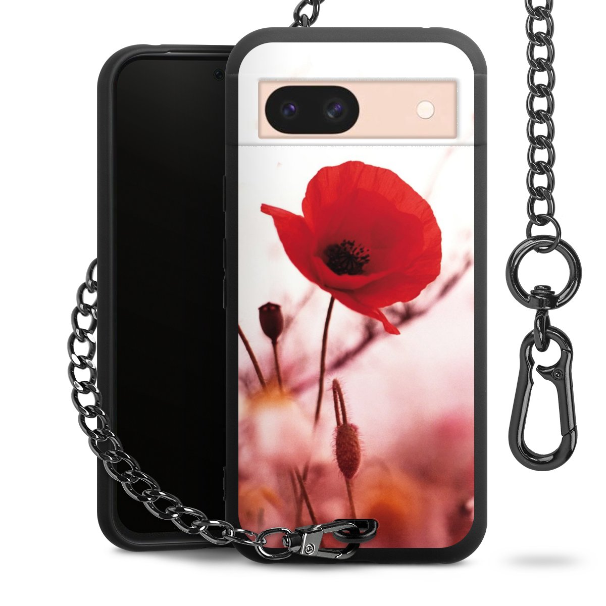Die mattschwarze Silikon-Handyhülle besteht aus robustem TPU (thermoplastisches Polyurethan). Sie ist flexibel und schützt Dein Smartphone vor Stößen und Kratzern. Die Kette sowie der Karabinerhaken sind aus Metall in Gunmetal-Optik gefertigt. Für dieses Produkt kommen ausschließlich TÜV-geprüfte Materialien zum Einsatz.