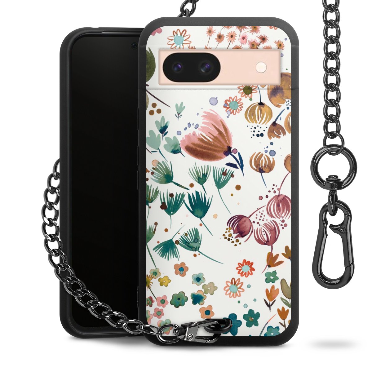 • Mattschwarze Handyhülle mit Metallkette