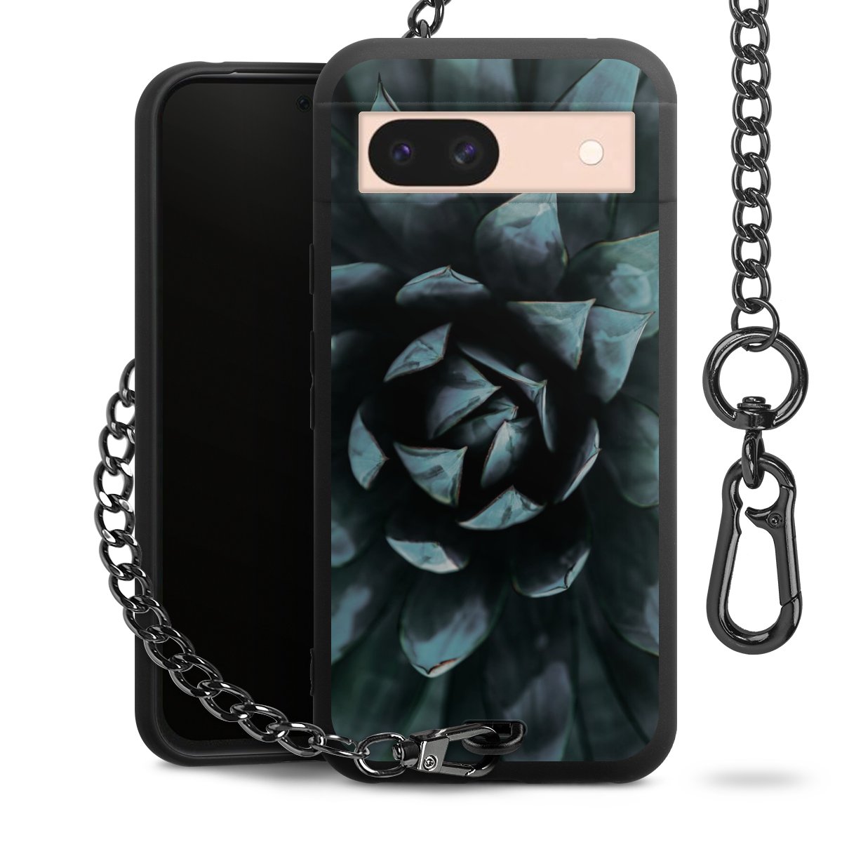 - Mattschwarze Handyhülle mit Metallkette