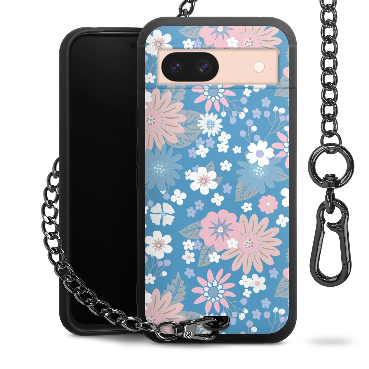 Die mattschwarze Silikon-Handyhülle besteht aus robustem TPU (thermoplastisches Polyurethan). Sie ist flexibel und schützt Dein Smartphone vor Stößen und Kratzern. Die Kette sowie der Karabinerhaken sind aus Metall in Gunmetal-Optik gefertigt. Für dieses Produkt kommen ausschließlich TÜV-geprüfte Materialien zum Einsatz.