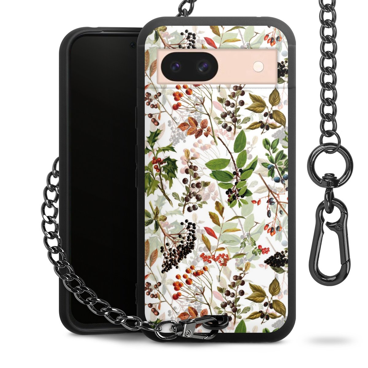 • Mattschwarze Handyhülle mit Metallkette