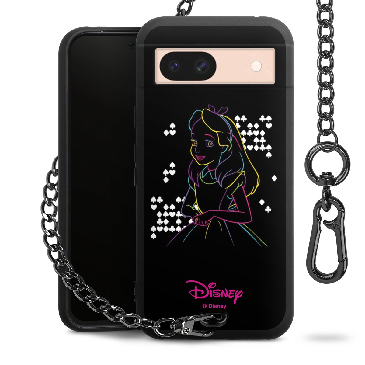 Die mattschwarze Silikon-Handyhülle besteht aus robustem TPU (thermoplastisches Polyurethan). Sie ist flexibel und schützt Dein Smartphone vor Stößen und Kratzern. Die Kette sowie der Karabinerhaken sind aus Metall in Gunmetal-Optik gefertigt. Für dieses Produkt kommen ausschließlich TÜV-geprüfte Materialien zum Einsatz.