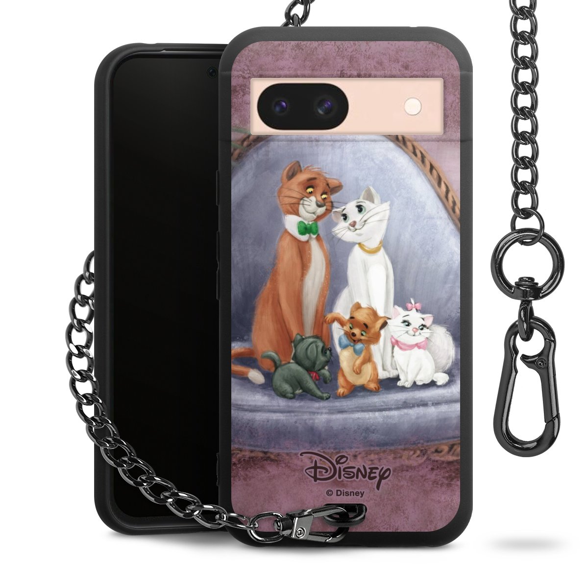 Die mattschwarze Silikon-Handyhülle besteht aus robustem TPU (thermoplastisches Polyurethan). Sie ist flexibel und schützt Dein Smartphone vor Stößen und Kratzern. Die Kette sowie der Karabinerhaken sind aus Metall in Gunmetal-Optik gefertigt. Für dieses Produkt kommen ausschließlich TÜV-geprüfte Materialien zum Einsatz.