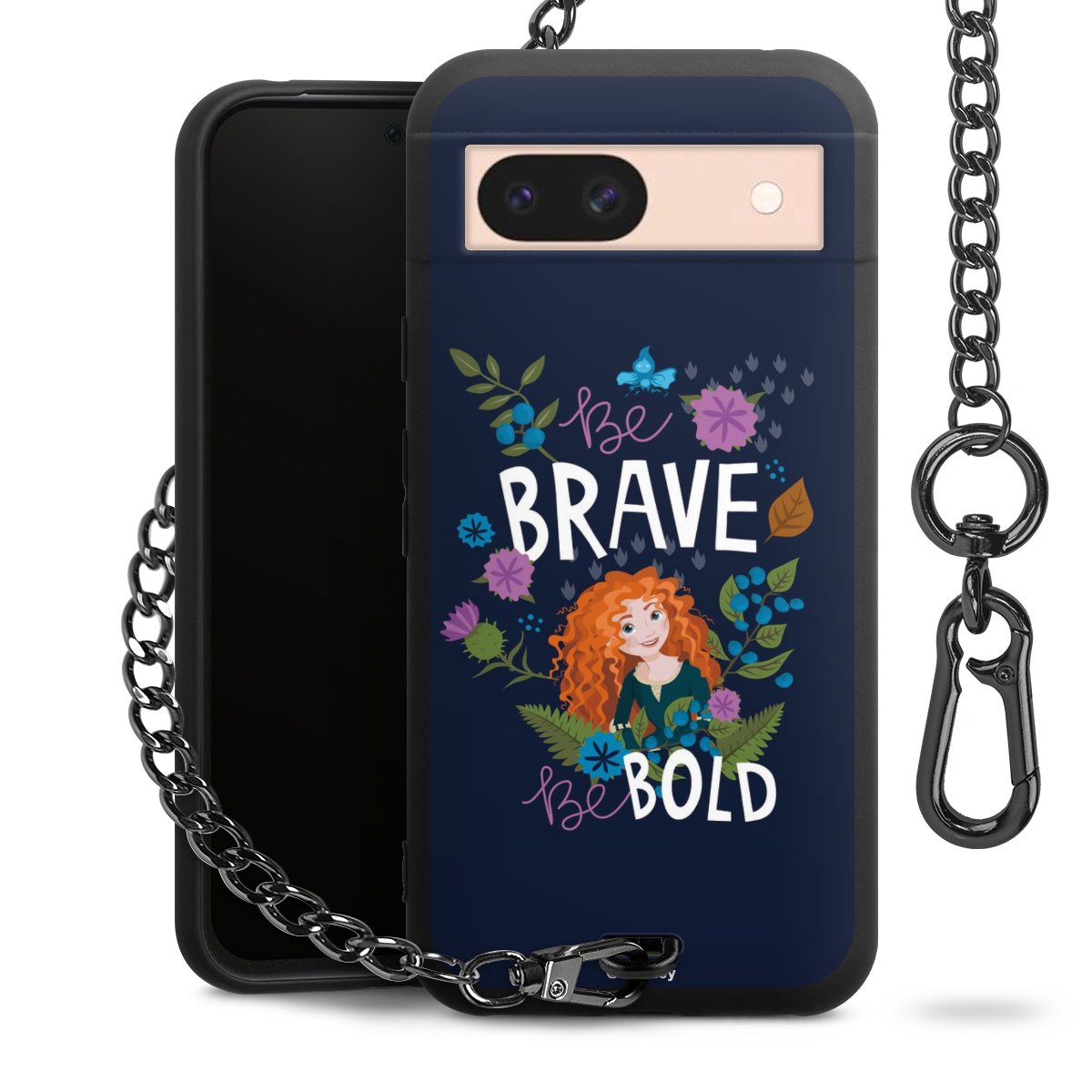 - Mattschwarze Handyhülle mit Metallkette