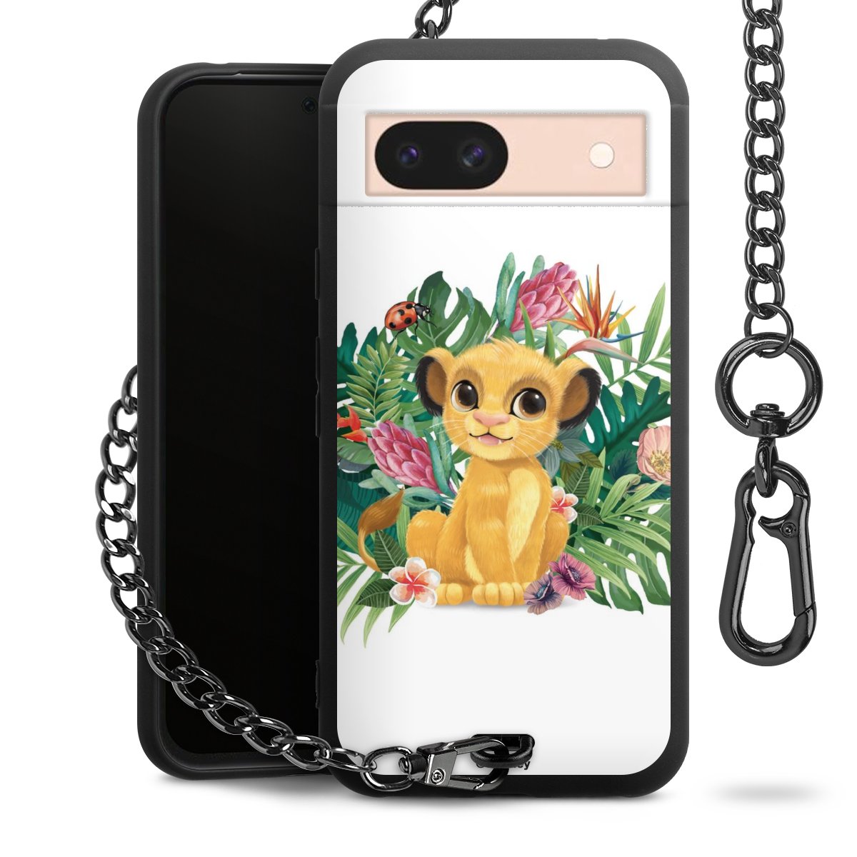 Die Handyhülle verfügt über eine mittig am unteren Rand platzierte Öse, an der die Metallkette stabil befestigt ist. Bestelle die Hülle einfach für Dein Smartphone-Modell, dann passt sie wie angegossen und Du brauchst sie bloß einmal anzudrücken. Handy in die Tasche, Karabiner an den Hosenbund – schon kann die Party starten.