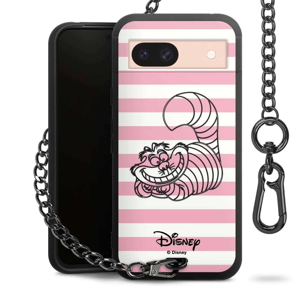 Die mattschwarze Silikon-Handyhülle besteht aus robustem TPU (thermoplastisches Polyurethan). Sie ist flexibel und schützt Dein Smartphone vor Stößen und Kratzern. Die Kette sowie der Karabinerhaken sind aus Metall in Gunmetal-Optik gefertigt. Für dieses Produkt kommen ausschließlich TÜV-geprüfte Materialien zum Einsatz.