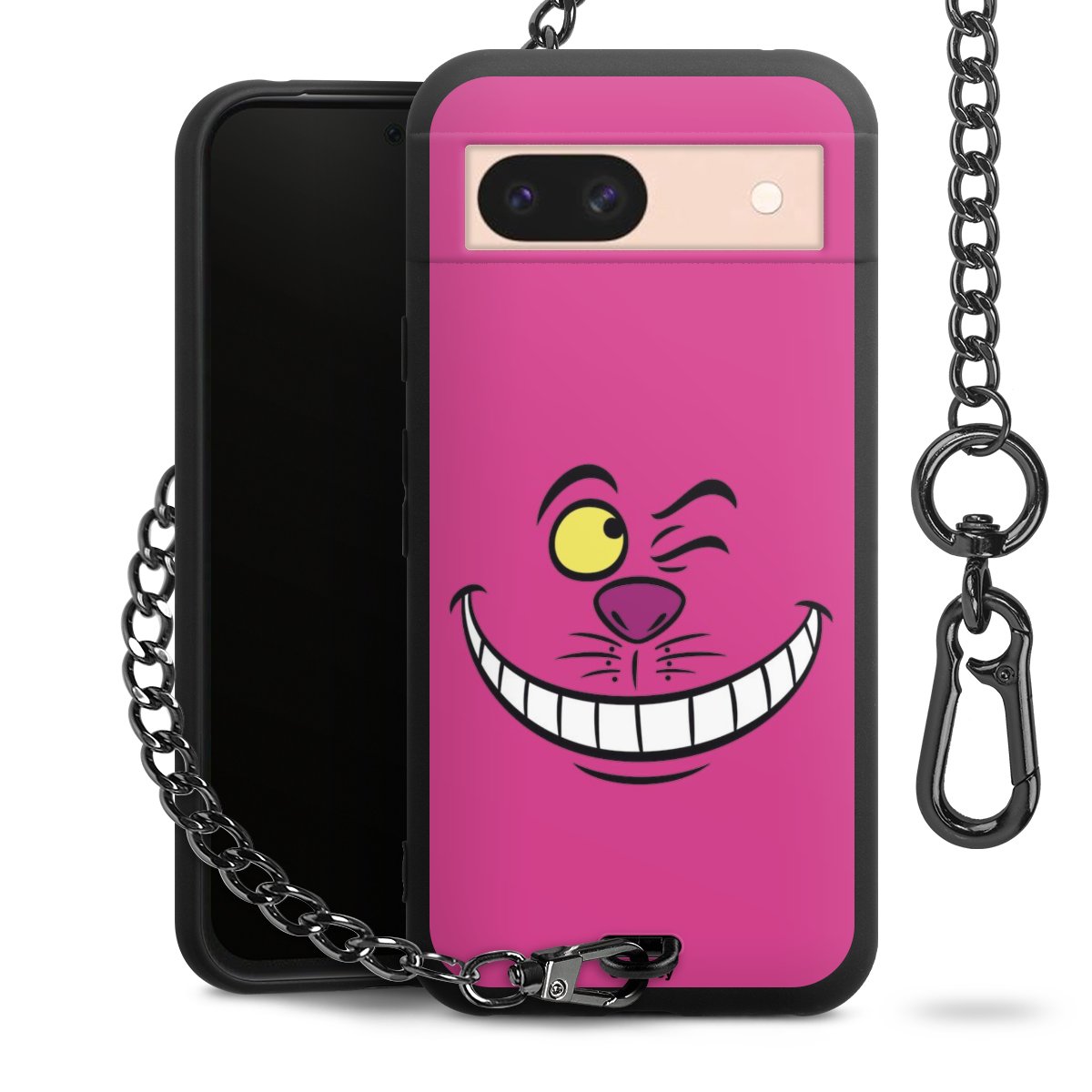 Die mattschwarze Silikon-Handyhülle besteht aus robustem TPU (thermoplastisches Polyurethan). Sie ist flexibel und schützt Dein Smartphone vor Stößen und Kratzern. Die Kette sowie der Karabinerhaken sind aus Metall in Gunmetal-Optik gefertigt. Für dieses Produkt kommen ausschließlich TÜV-geprüfte Materialien zum Einsatz.