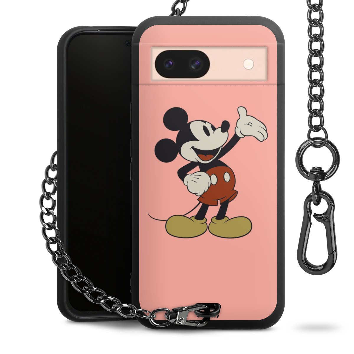 • Mattschwarze Handyhülle mit Metallkette