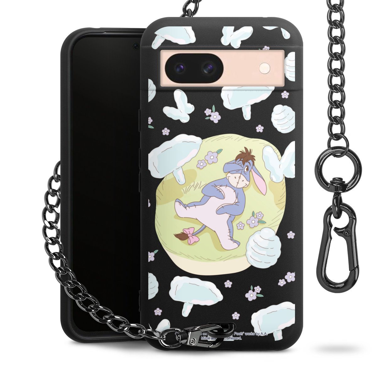 Die Handyhülle verfügt über eine mittig am unteren Rand platzierte Öse, an der die Metallkette stabil befestigt ist. Bestelle die Hülle einfach für Dein Smartphone-Modell, dann passt sie wie angegossen und Du brauchst sie bloß einmal anzudrücken. Handy in die Tasche, Karabiner an den Hosenbund – schon kann die Party starten.