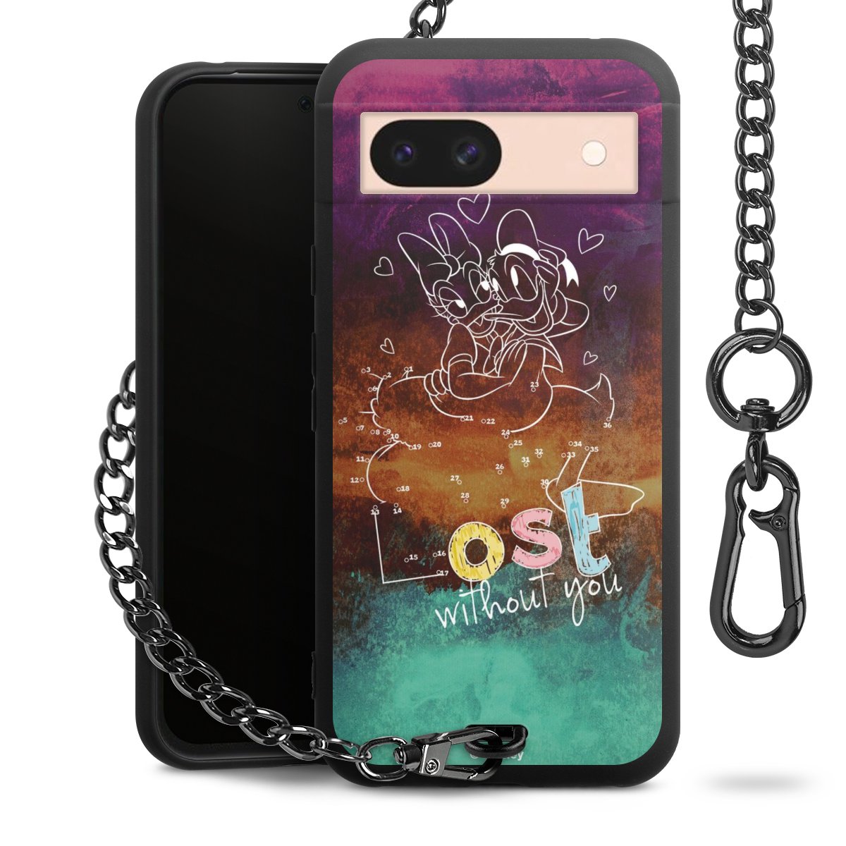 Die mattschwarze Silikon-Handyhülle besteht aus robustem TPU (thermoplastisches Polyurethan). Sie ist flexibel und schützt Dein Smartphone vor Stößen und Kratzern. Die Kette sowie der Karabinerhaken sind aus Metall in Gunmetal-Optik gefertigt. Für dieses Produkt kommen ausschließlich TÜV-geprüfte Materialien zum Einsatz.