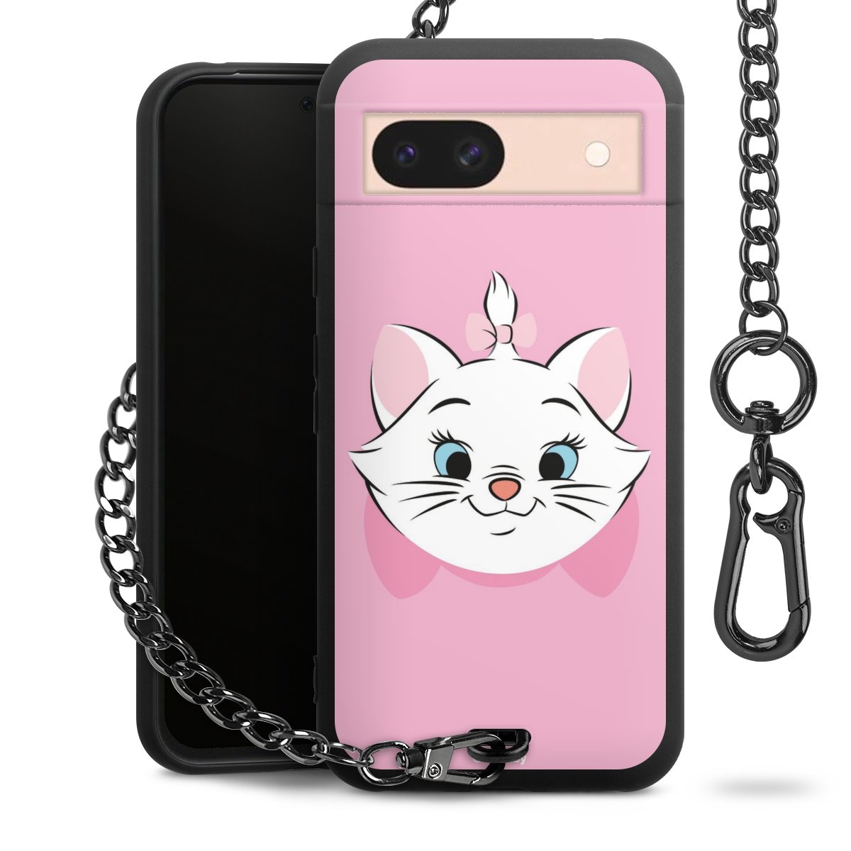 • Mattschwarze Handyhülle mit Metallkette