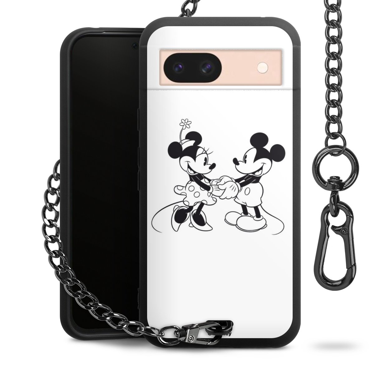 Die mattschwarze Silikon-Handyhülle besteht aus robustem TPU (thermoplastisches Polyurethan). Sie ist flexibel und schützt Dein Smartphone vor Stößen und Kratzern. Die Kette sowie der Karabinerhaken sind aus Metall in Gunmetal-Optik gefertigt. Für dieses Produkt kommen ausschließlich TÜV-geprüfte Materialien zum Einsatz.
