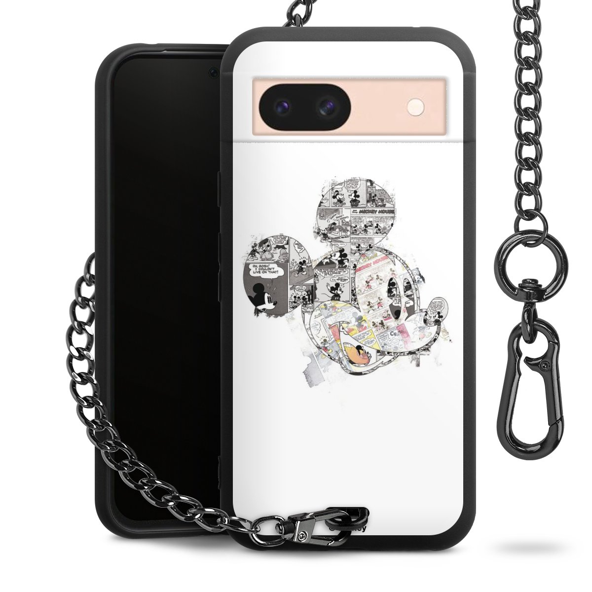 Die mattschwarze Silikon-Handyhülle besteht aus robustem TPU (thermoplastisches Polyurethan). Sie ist flexibel und schützt Dein Smartphone vor Stößen und Kratzern. Die Kette sowie der Karabinerhaken sind aus Metall in Gunmetal-Optik gefertigt. Für dieses Produkt kommen ausschließlich TÜV-geprüfte Materialien zum Einsatz.