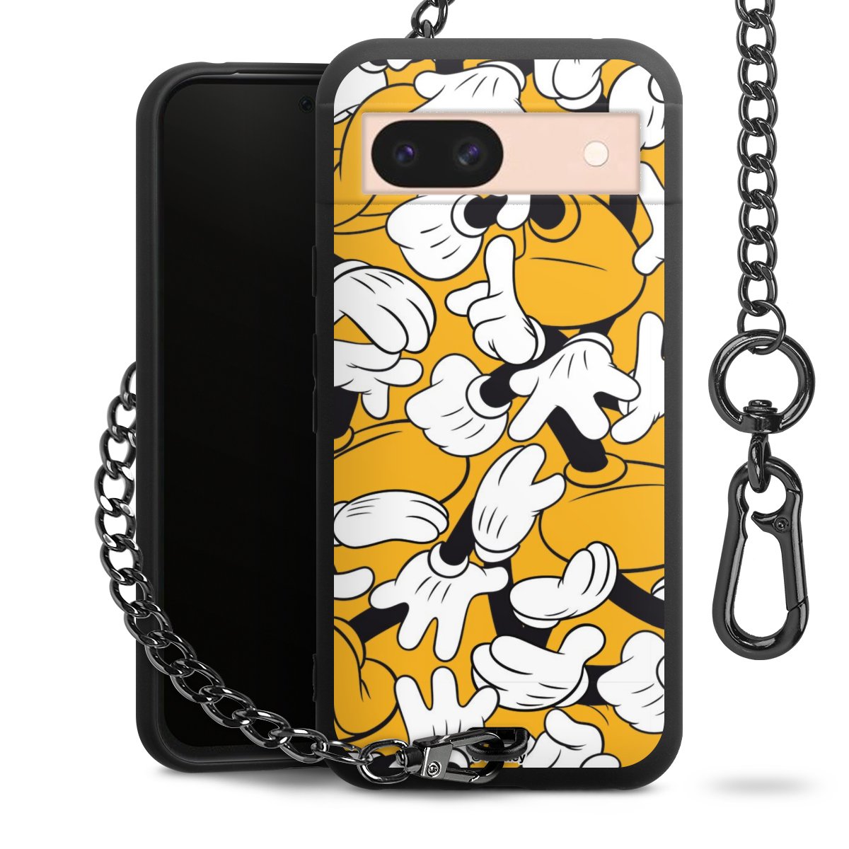 Die mattschwarze Silikon-Handyhülle besteht aus robustem TPU (thermoplastisches Polyurethan). Sie ist flexibel und schützt Dein Smartphone vor Stößen und Kratzern. Die Kette sowie der Karabinerhaken sind aus Metall in Gunmetal-Optik gefertigt. Für dieses Produkt kommen ausschließlich TÜV-geprüfte Materialien zum Einsatz.