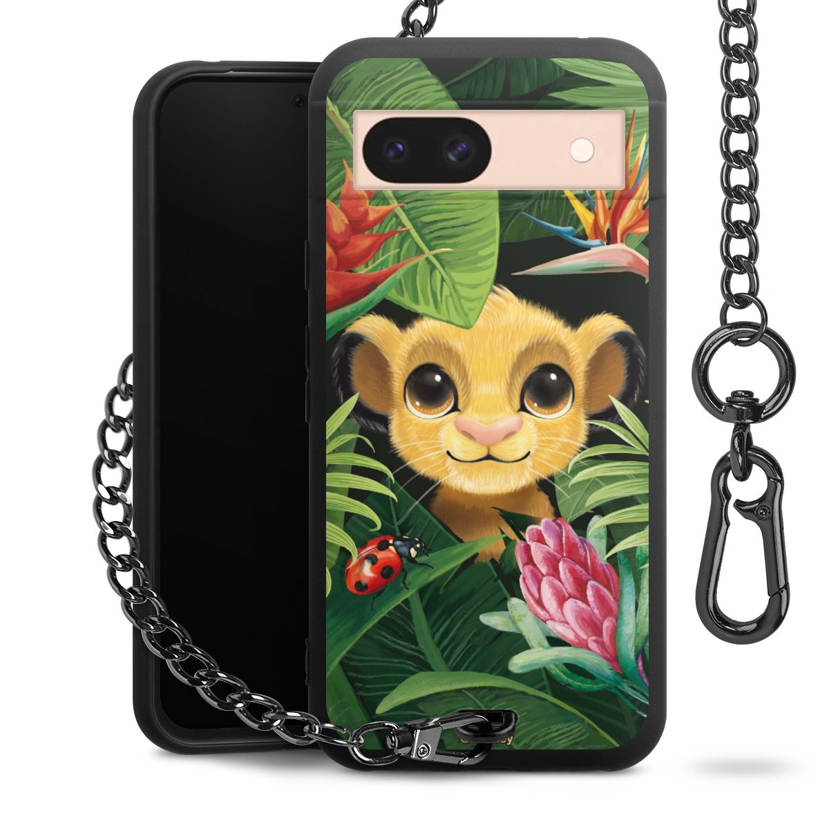 Die Handyhülle verfügt über eine mittig am unteren Rand platzierte Öse, an der die Metallkette stabil befestigt ist. Bestelle die Hülle einfach für Dein Smartphone-Modell, dann passt sie wie angegossen und Du brauchst sie bloß einmal anzudrücken. Handy in die Tasche, Karabiner an den Hosenbund – schon kann die Party starten.