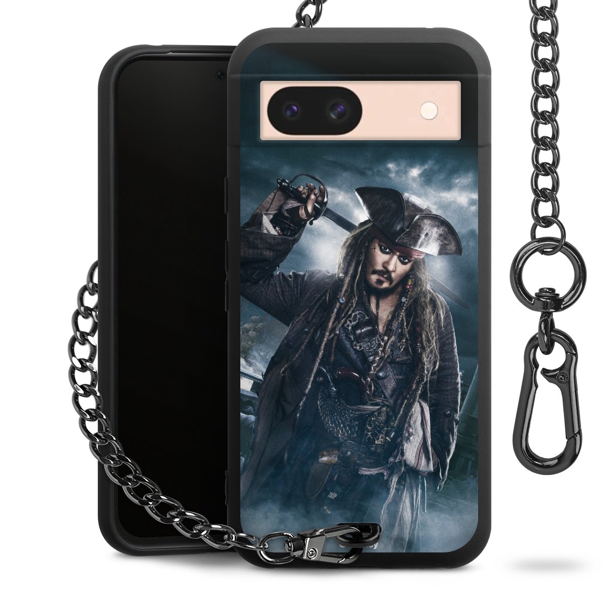 • Mattschwarze Handyhülle mit Metallkette
