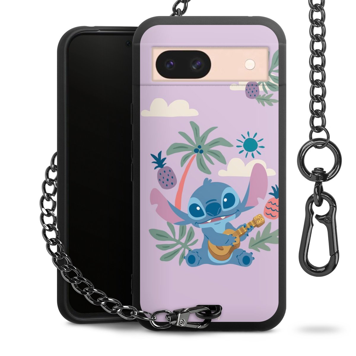 Die Handyhülle verfügt über eine mittig am unteren Rand platzierte Öse, an der die Metallkette stabil befestigt ist. Bestelle die Hülle einfach für Dein Smartphone-Modell, dann passt sie wie angegossen und Du brauchst sie bloß einmal anzudrücken. Handy in die Tasche, Karabiner an den Hosenbund – schon kann die Party starten.