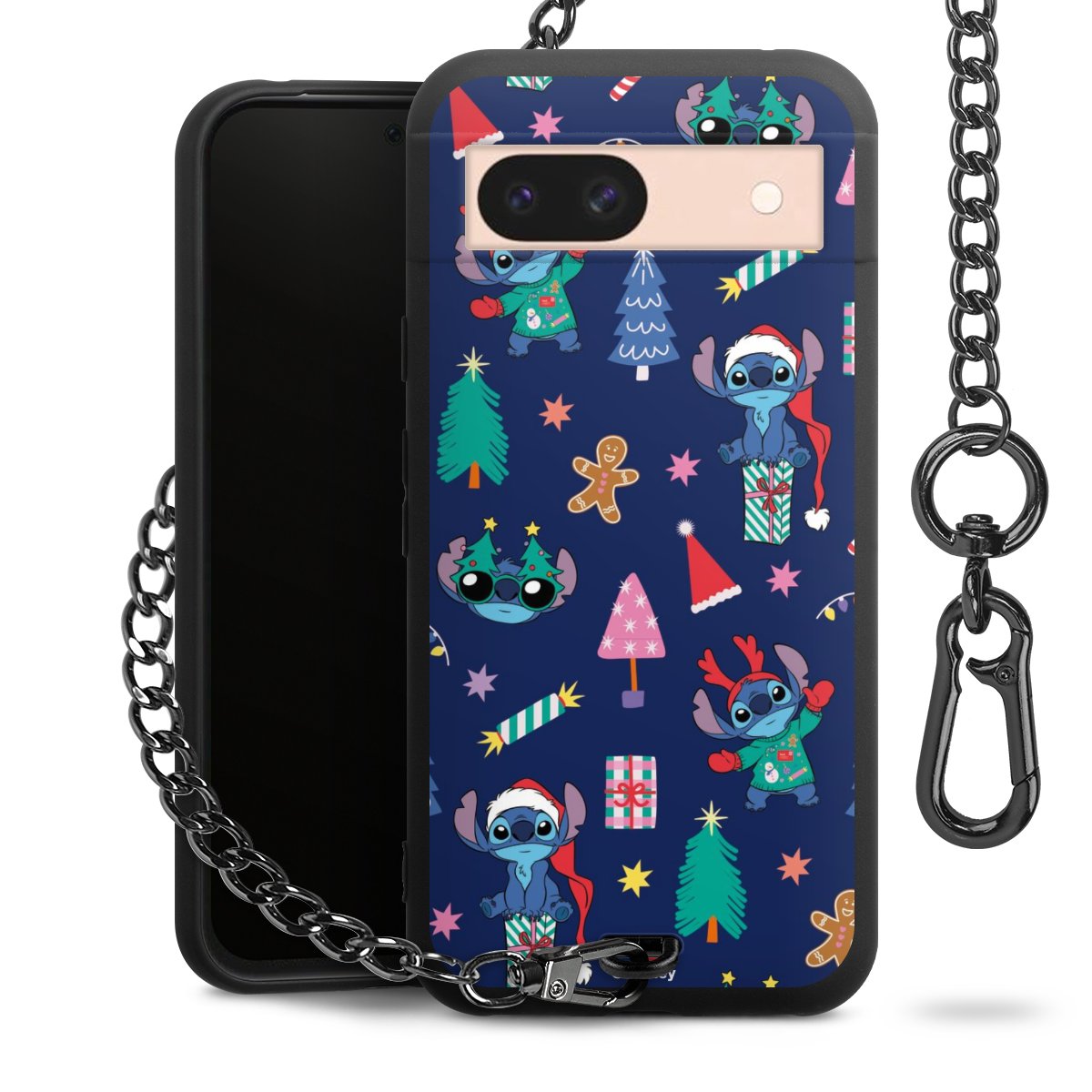 • Mattschwarze Handyhülle mit Metallkette