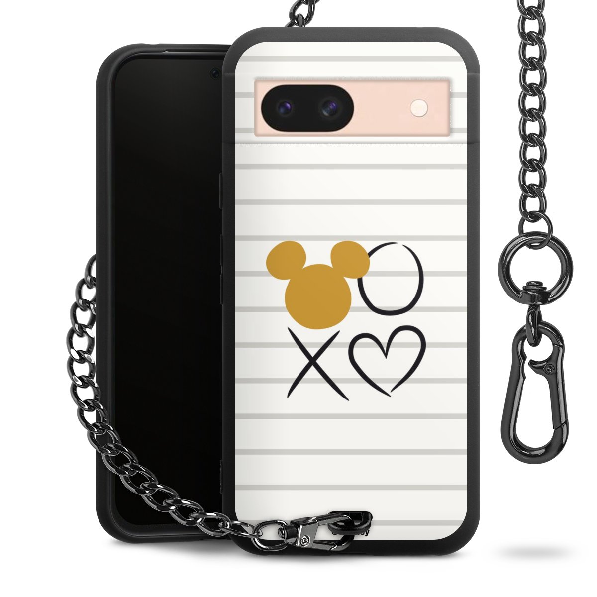 Die mattschwarze Silikon-Handyhülle besteht aus robustem TPU (thermoplastisches Polyurethan). Sie ist flexibel und schützt Dein Smartphone vor Stößen und Kratzern. Die Kette sowie der Karabinerhaken sind aus Metall in Gunmetal-Optik gefertigt. Für dieses Produkt kommen ausschließlich TÜV-geprüfte Materialien zum Einsatz.